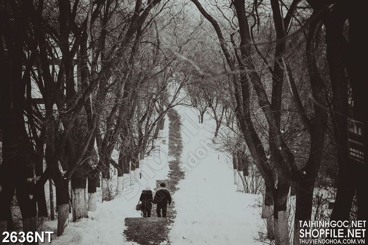 Tranh người đi trên con đường phủ tuyết