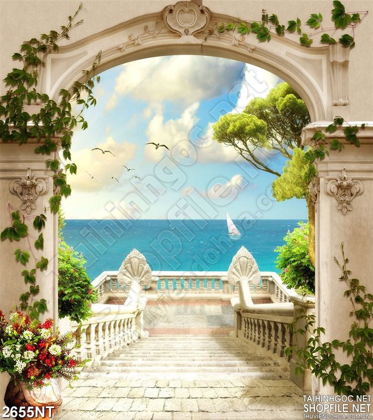 Tranh cánh cổng lâu đài nhìn ra biển lớn