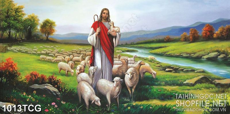 Tranh công giáo đàn cừu con bên tình thương của đức chúa
