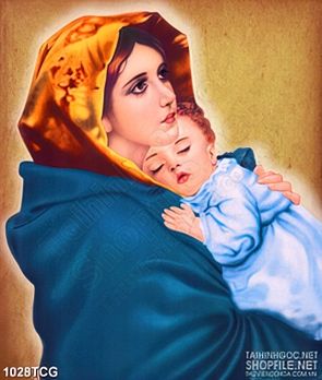 Tranh công giáo đức mẹ Maria ôm babby bé nhỏ trong lòng